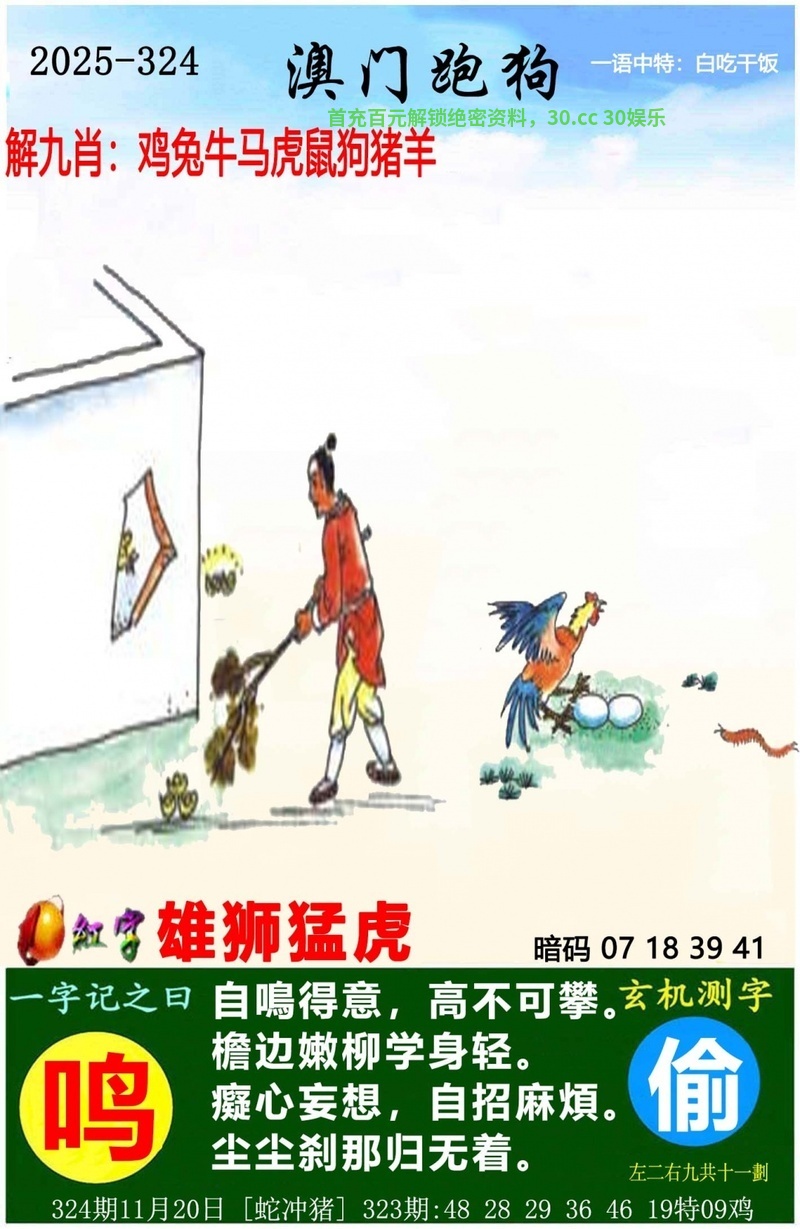 328期今日闲情:【更新】 图解:更新 综合解肖:更新 |